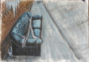 Sofa in the Street – A2 – Watercolour and Acrylic